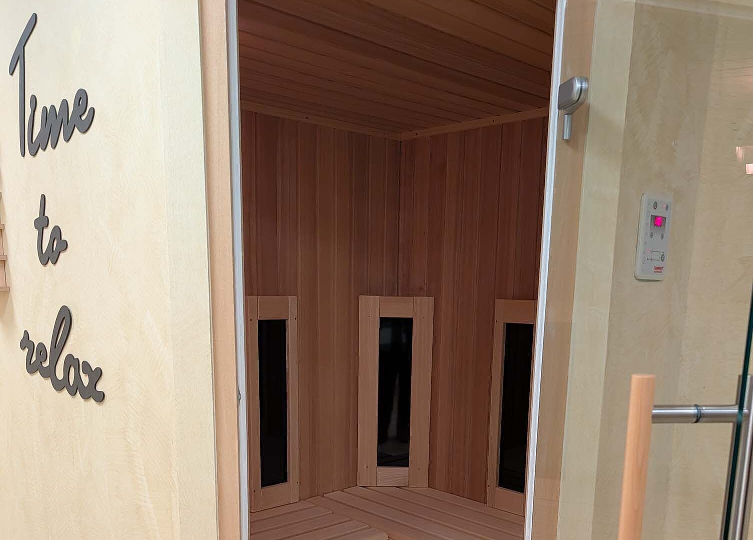 Die Infrarotkabine spendet wohltuende Tiefenwärme und unterstützt die Lockerung von Muskulatur und Verspannungen.